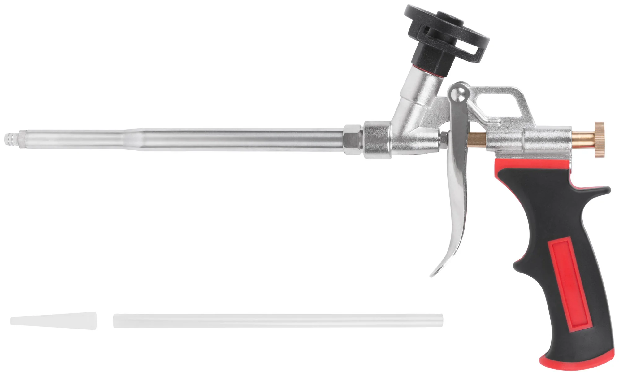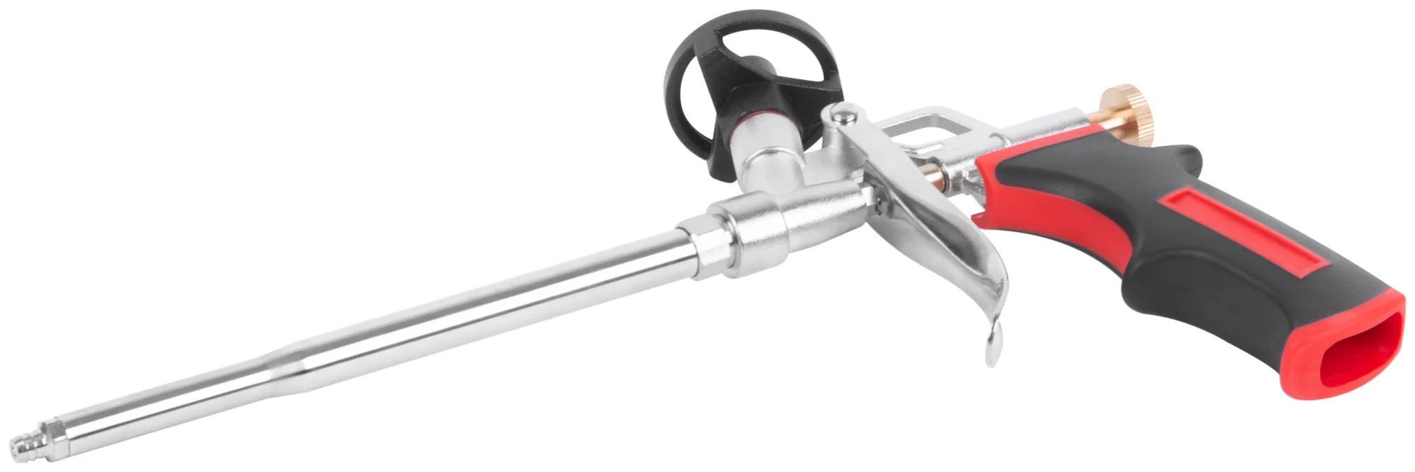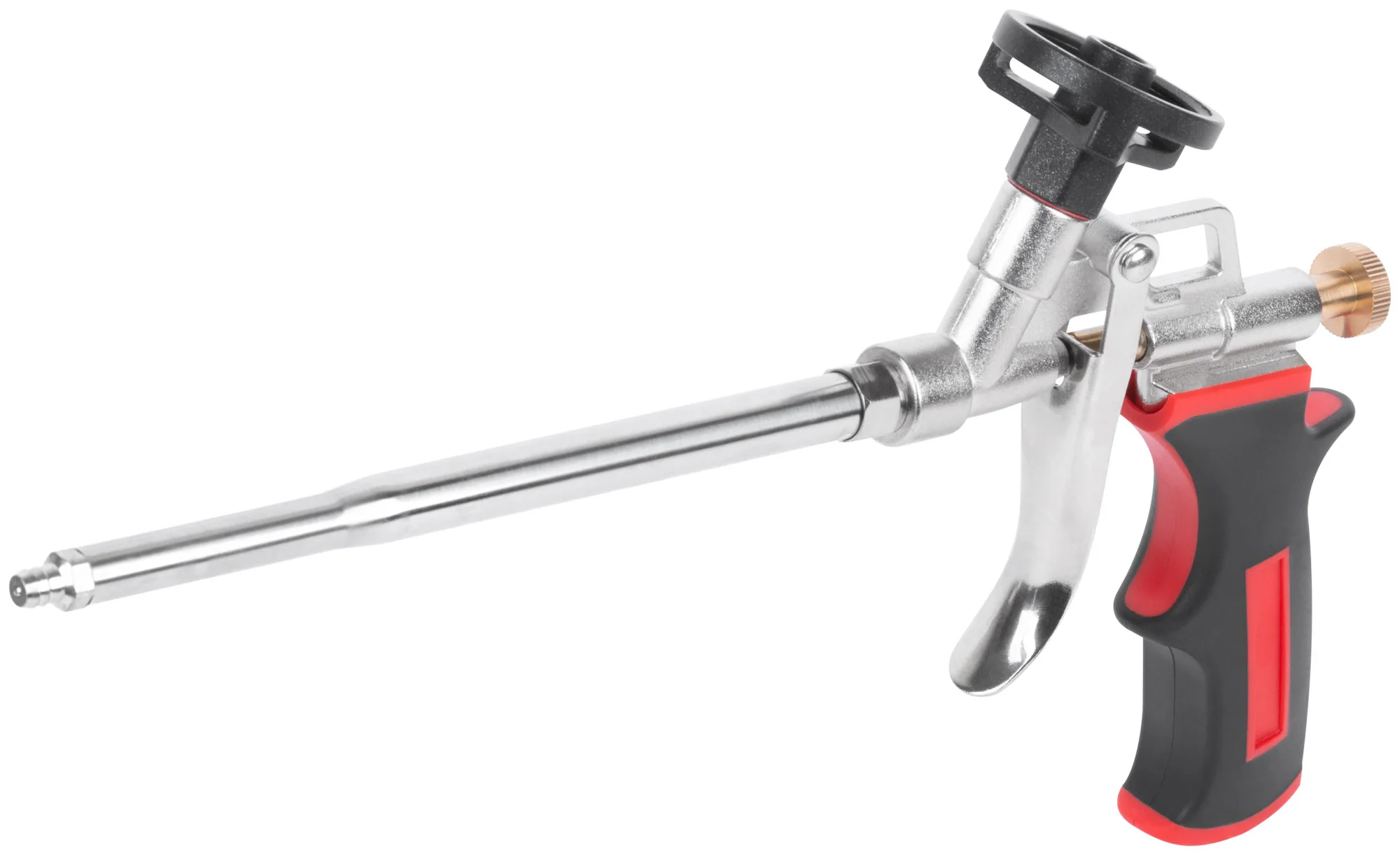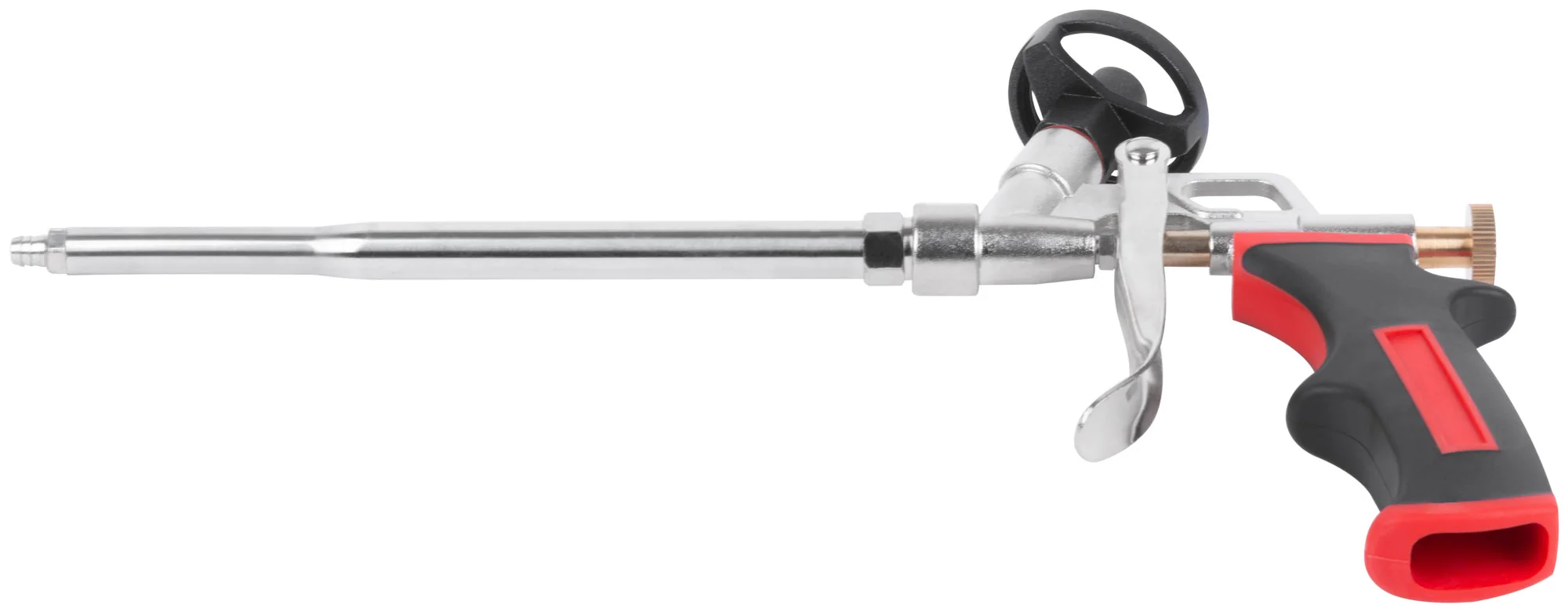 Этот инструмент изготовлен из алюминиевого сплава с хромированным покрытием, что обеспечивает его долговечность и устойчивость к коррозии. Подающая трубка из инструментальной стали с никелевым покрытием гарантирует надежность подачи, а тефлоновое покрытие клапана предотвращает налипание пены, облегчая очистку.
