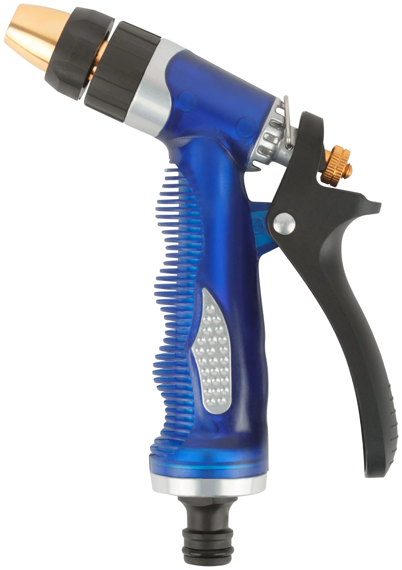 Главное преимущество этого пистолета — возможность регулировки потока воды от узкой струи до мягкого распыления. Это делает его универсальным инструментом для любых задач в саду, включая полив цветов, кустарников и газонов.