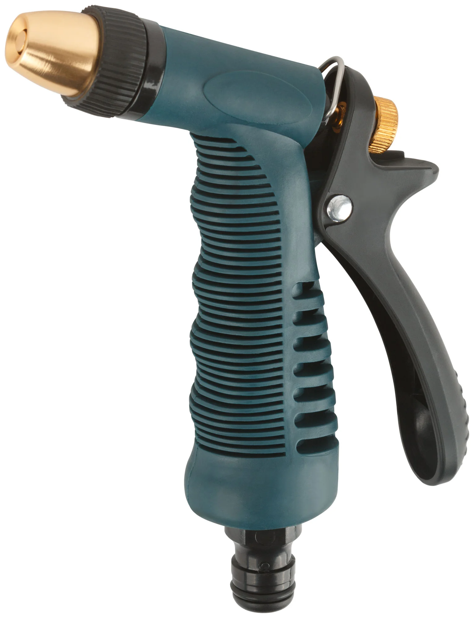 Изготовленный из прочного цинкового сплава с резиновым покрытием, этот пистолет обеспечивает долговечность и комфорт при использовании. Латунное сопло гарантирует надежность и устойчивость к коррозии, а мягкая ручка из ПВХ снижает усталость при длительном использовании.