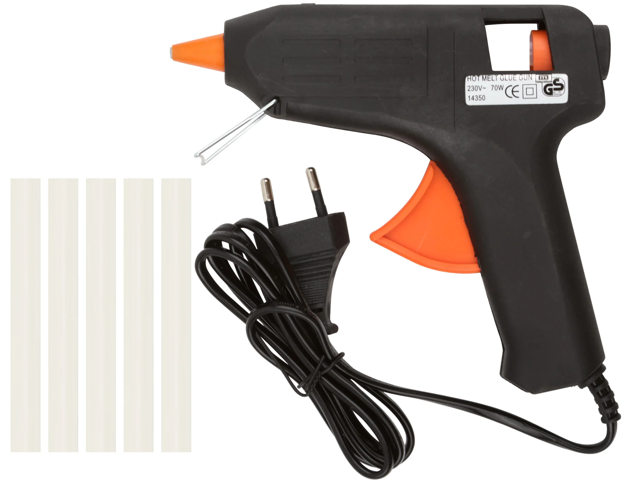 Корпус пистолета выполнен из прочного пластика, а внутренние элементы — из инструментальной стали и ПВХ, что гарантирует долговечность и надежность в работе. Работает от сети 220 В, обеспечивая мощность 15 Вт, которая может увеличиваться до 70 Вт для более сложных задач.