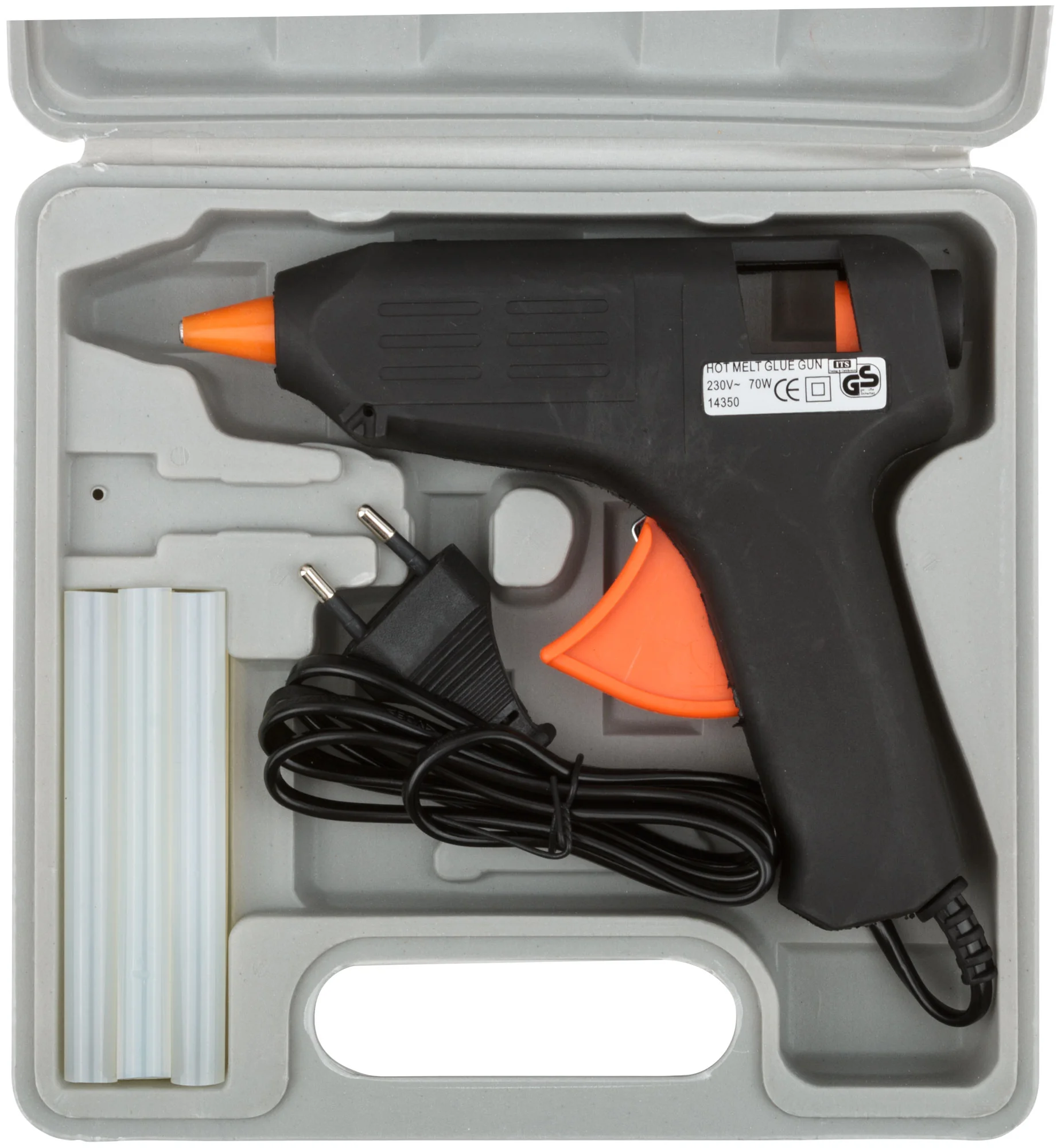 Пистолет клеевой FIT 14350 — это надежный инструмент для склеивания дерева, бумаги, ДСП, линолеума и пластика. Идеально подходит для использования как в домашних условиях, так и на профессиональных стройках и ремонтных объектах. Удобный кейс обеспечивает легкую транспортировку и хранение.