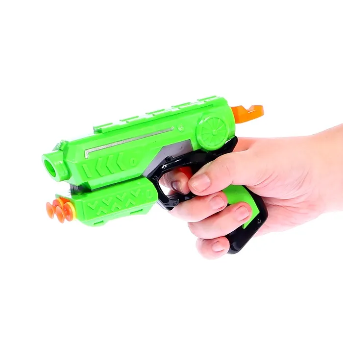 Используйте для игры мишени и устройте настоящее соревнование, чтобы потренировать ловкость и меткость. Этот красочный пистолет разнообразит досуг вашего ребёнка, добавит ему динамики и веселья. Малыш будет сам придумывать сюжеты и развивать воображение.