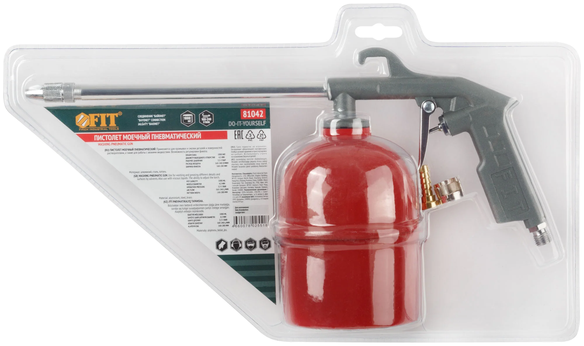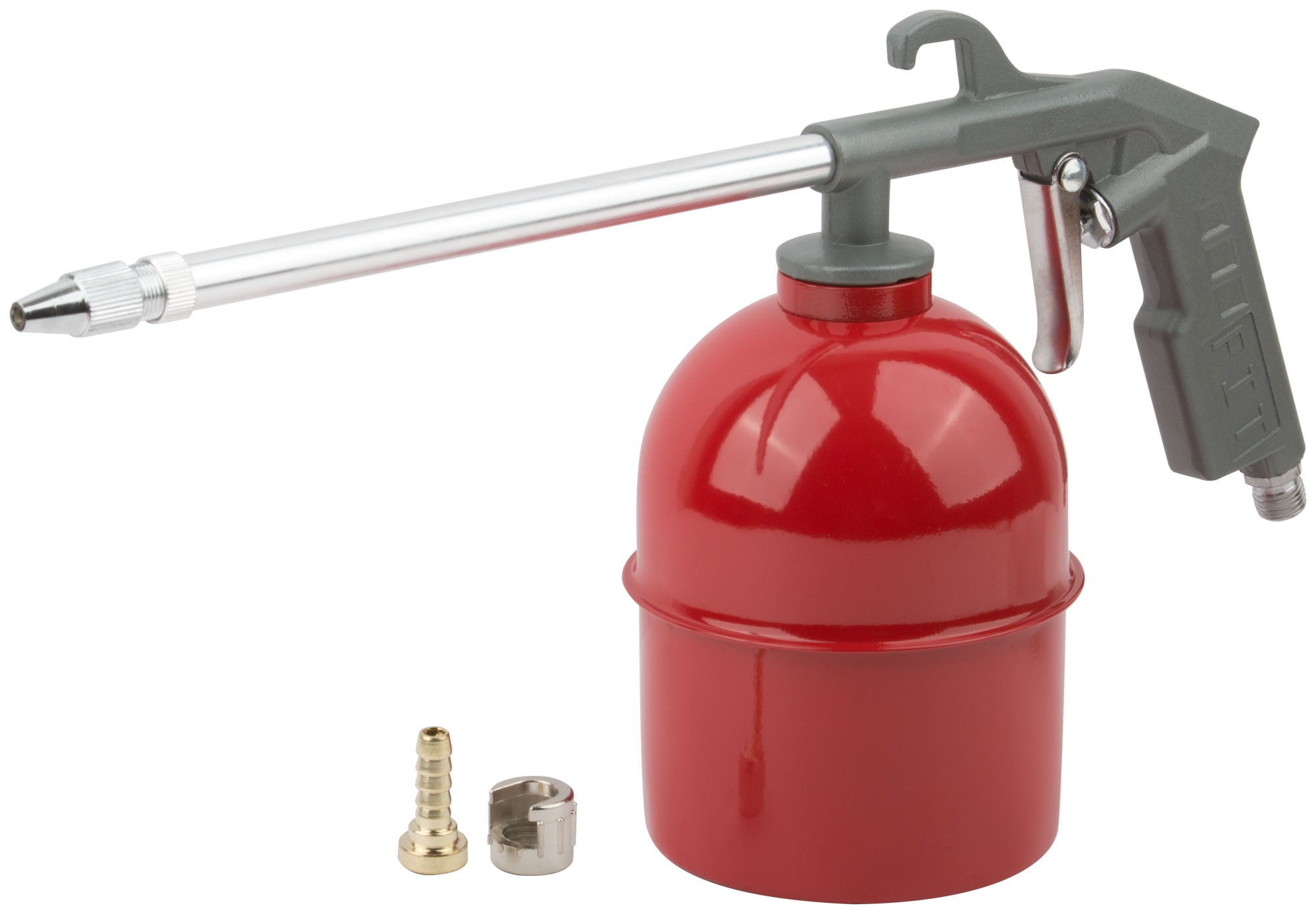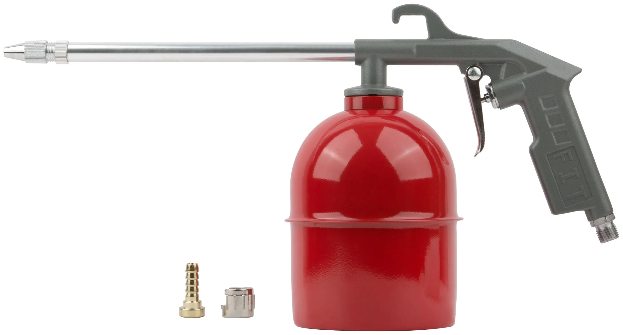 Идеальный инструмент для очистки и смазки деталей в мастерской или на производстве. Пневматический пистолет FIT оснащен длинным носиком, позволяющим легко добраться до труднодоступных мест, обеспечивая тщательную очистку и обработку поверхностей, включая детали и механизмы.