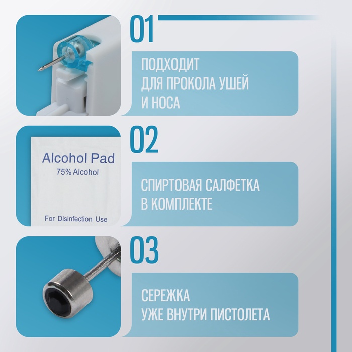 Пистолет одноразовый для пирсинга, серьга в комплекте «Мини», 4 мм, чёрный в серебре — Характеристики