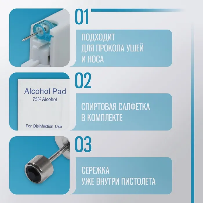 Этот одноразовый инструмент обеспечивает безопасное выполнение проколов уха без необходимости повторной стерилизации. Его использование подходит как для профессиональных мастеров, так и для тех, кто впервые решился на пирсинг. Мини-стержень и аккуратное украшение со стразами позволяют получить эстетичный результат и подчеркнуть индивидуальность. Надёжная застёжка гарантирует комфорт и безопасность во время процедуры.