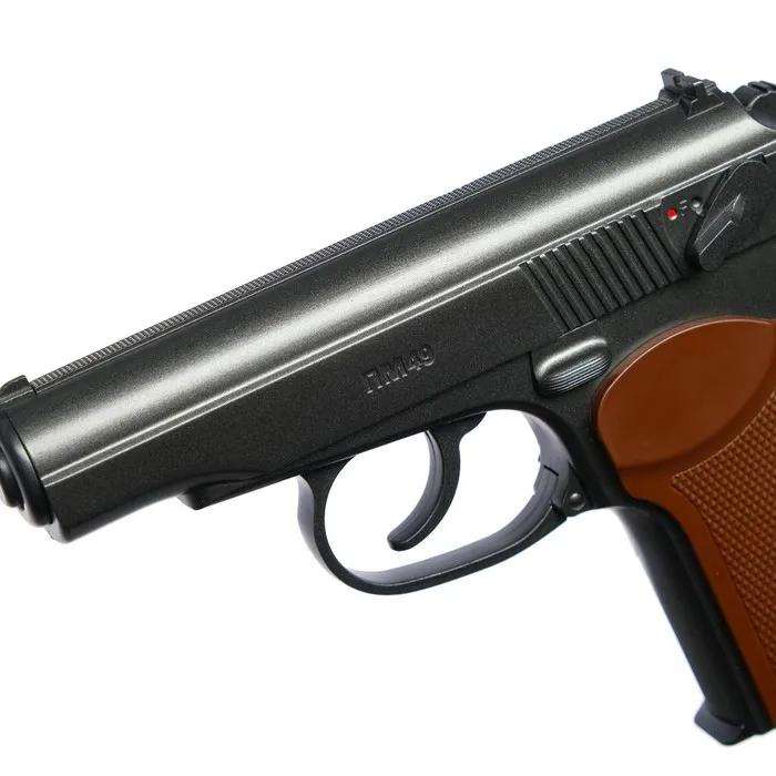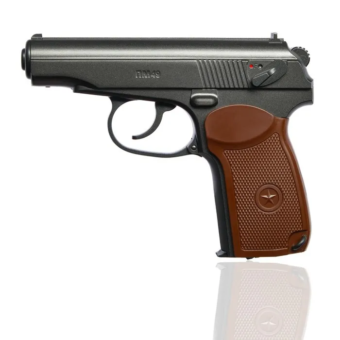 Пневматика Borner ПМ - копия всемирно известного пистолета «Макарова», сконструированного в 1949 г. Боевой аналог был на вооружении милицейских и армейских подразделений Советского Союза. Металлический корпус и накладки из пластика на рукоятке придают оружию Borner ПМ49 стильный внешний вид. Корпус пистолета - цельный литой, позволяет взводить спусковой курок при неподвижности рамы.