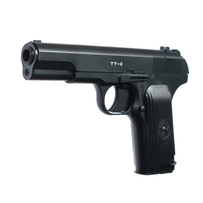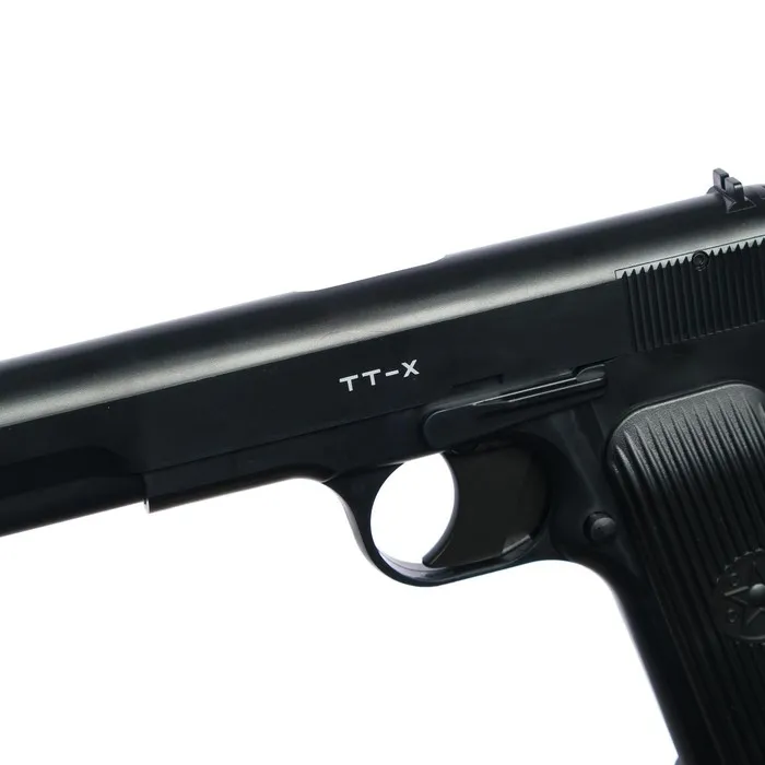 Пневматический пистолет Borner TT-X (Токарева) – это газобаллонная реплика непревзойденного ТТ, внешне полностью повторяющая боевой прототип. Выстрел из такого оружия возможен за счет использования энергии сжатого углекислого газа, которым заполнен баллончик весом 12 г. Место установки баллончика – отсек рукоятки.