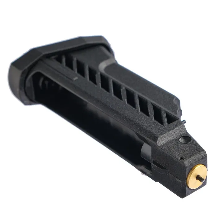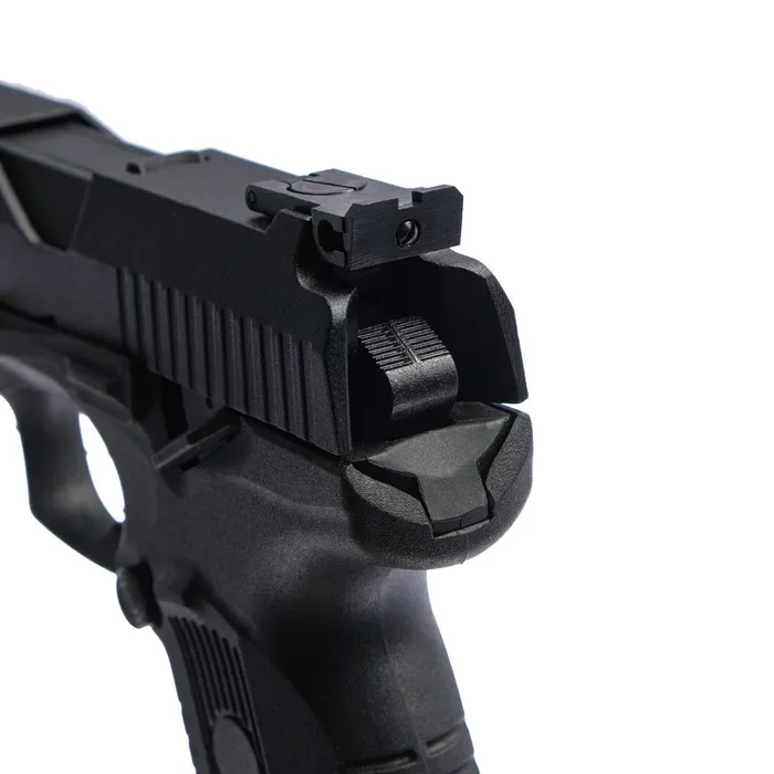 Модель имеет магазин бункерного типа, обеспечивающий большую вместительность - в нём помещается до 100 шариков, либо 8 пуль типа «Диаболо». При использовании шариков заряжается магазин за считанные секунды, достаточно лишь засыпать эти шарики в бункер. Если применяются пули, то их заряжают прямо в барабан, эта модель пистолета оснащена показателем количества зарядов.