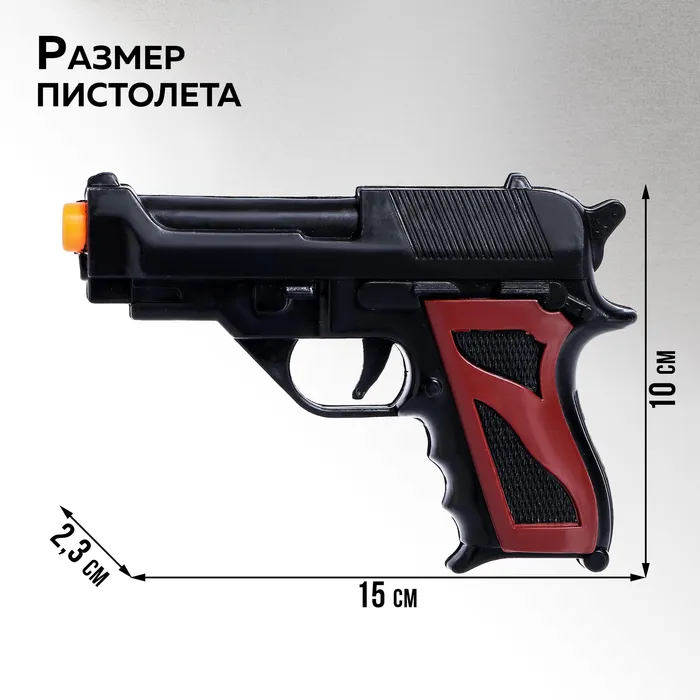 - Компактный размер делает пистолет удобным для детских рук и позволяет брать его с собой куда угодно.