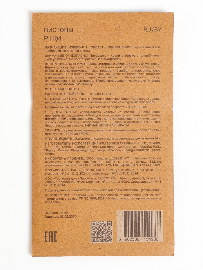 Пистоны для игрушечного оружия, 8 зарядов, 72 выстрела — Характеристики