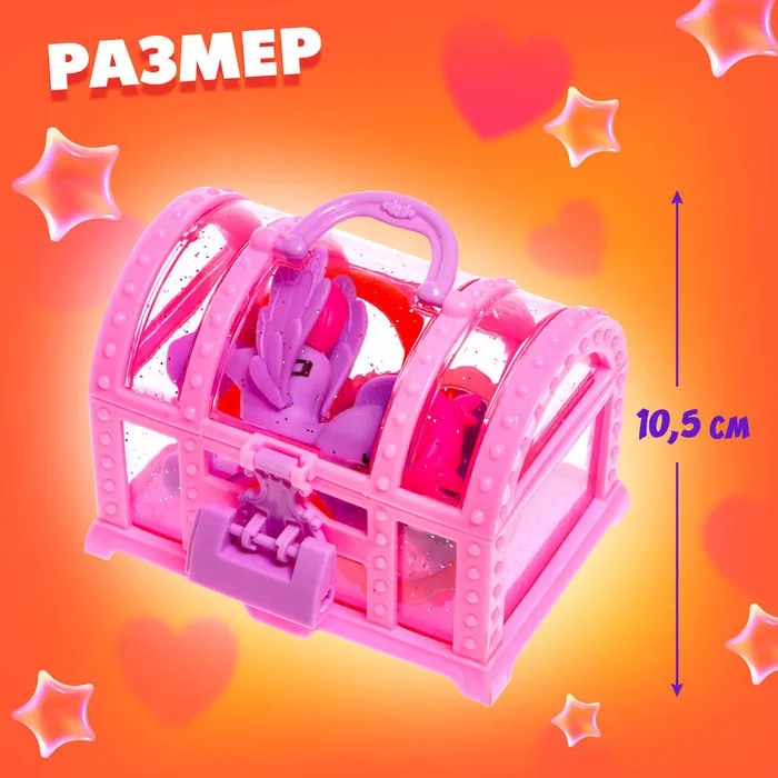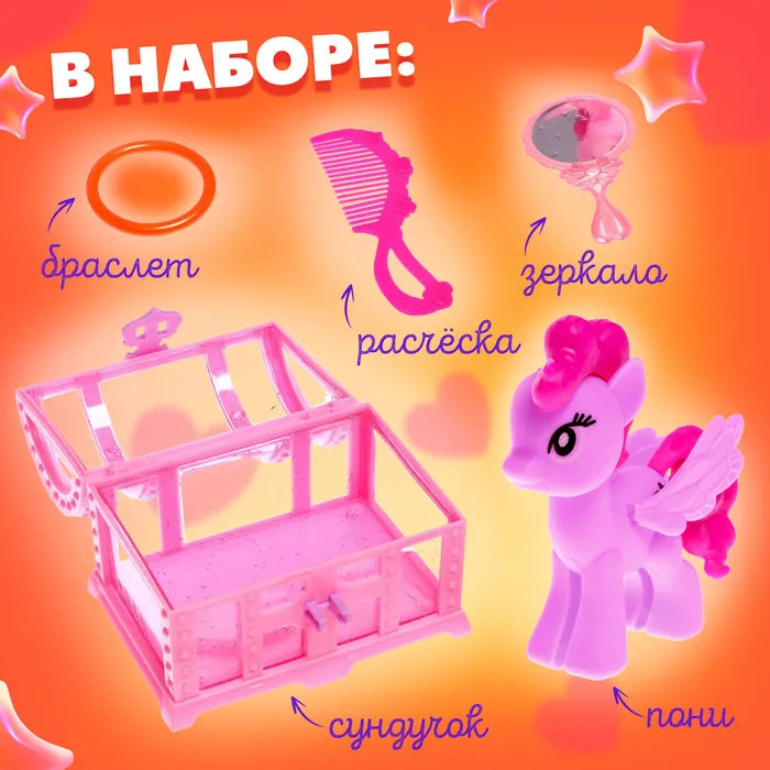 Набор с пони понравится всем маленьким модницам, которые любят наряжаться и играть с питомцами. В комплекте много аксессуаров для красоты ребёнка.