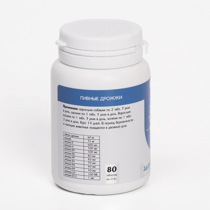 Пивные дрожжи Здоровые кости для кошек и собак, с кальцием, 80 таб