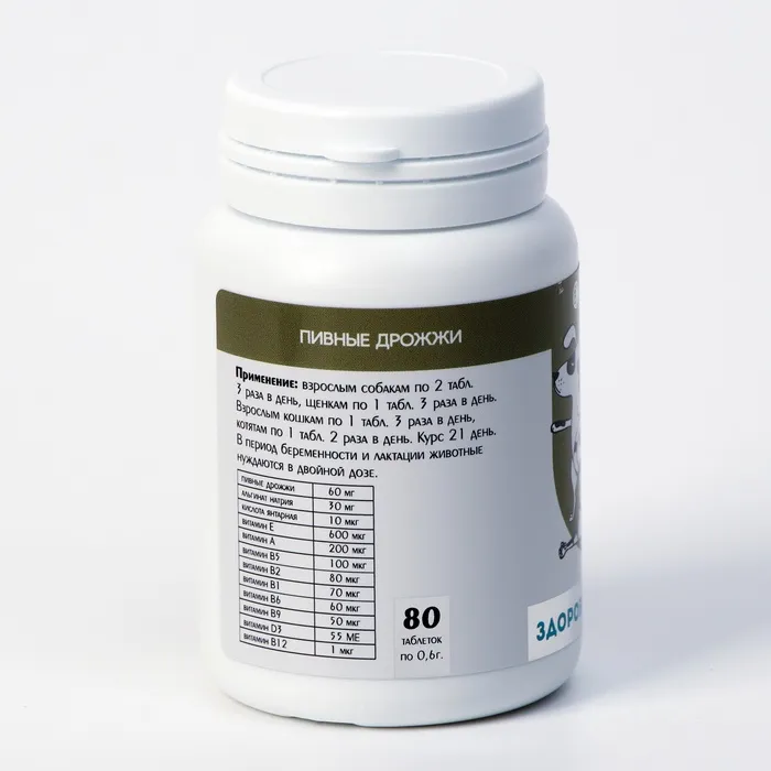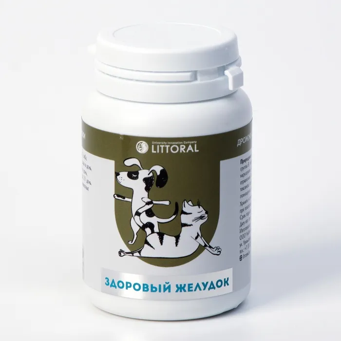 Пивные дрожжи Здоровый желудок для кошек и собак, с энтеросорбентом, 80 таблеток.