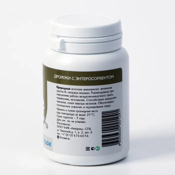 Состав: пивные дрожжи – 60 мг, Альгинат натрия – 30 мг, кислота янтарная-10 мг., витамин Е – 600 мкг, витамин А – 200 мкг, витамин В5 – 100 мкг, витамин В2 – 80 мкг, витамин PP – 80 мкг, витамин В1 – 70 мкг, витамин В6 – 60 мкг, витамин В9 – 50 мкг, витамин D3 – 55 ME, витамин В12 – 1 мкг.