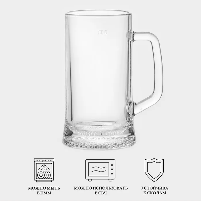 - Удобный объем. 330 мл – классический объем для кружки пива.