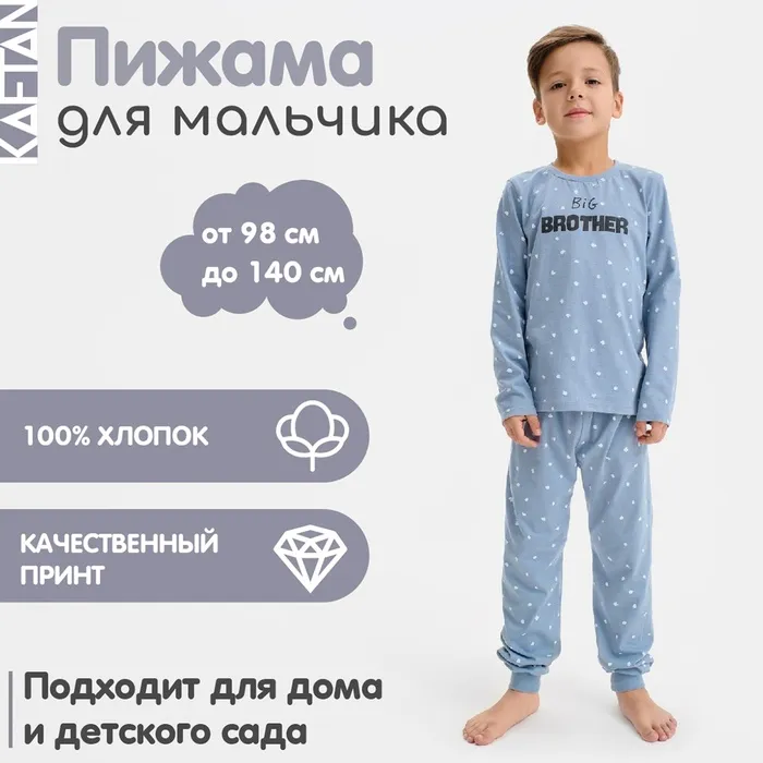 Пижама детская для мальчика KAFTAN Brother, размер 30 (98-104 см), серо-голубая — Характеристики