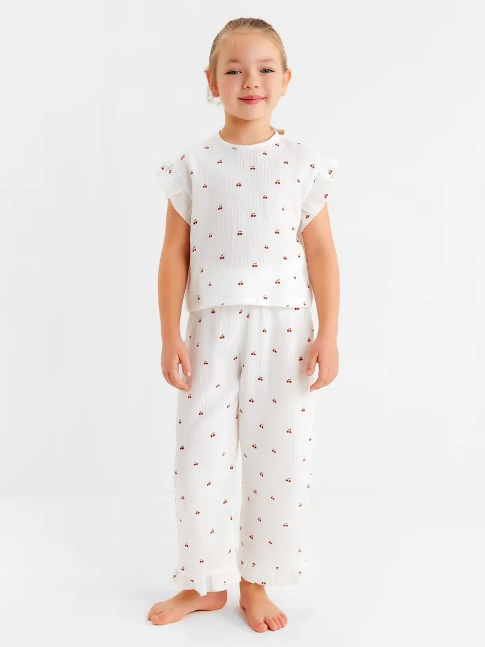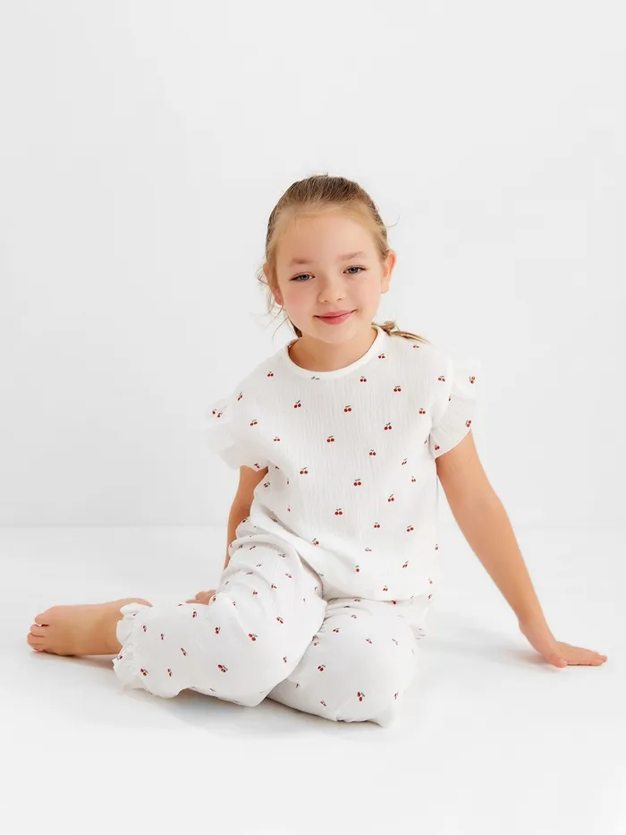 Пижама детская (футболка и брюки) KAFTAN "Вишенки" р.34 (122-128 см) — Характеристики