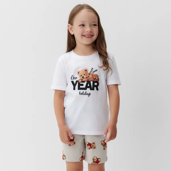 Пижама детская (футболка и шорты) KAFTAN "Мишка в шарфе" размер 28 (86-92 см) — Характеристики