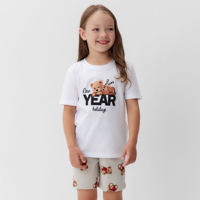 Пижама детская (футболка и шорты) KAFTAN "Мишка в шарфе" размер 30 (98-104 см) — Характеристики