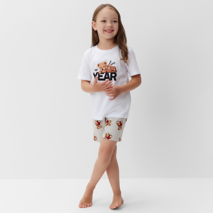 Пижама детская (футболка и шорты) KAFTAN "Мишка в шарфе" размер 32 (110-116 см) — Характеристики