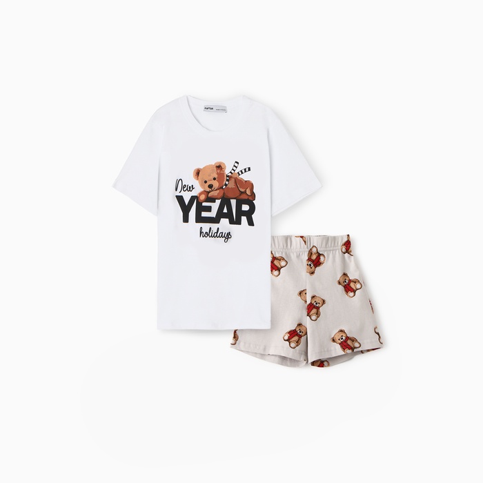Пижама детская (футболка и шорты) KAFTAN "Мишка в шарфе" размер 36 (134-140 см)