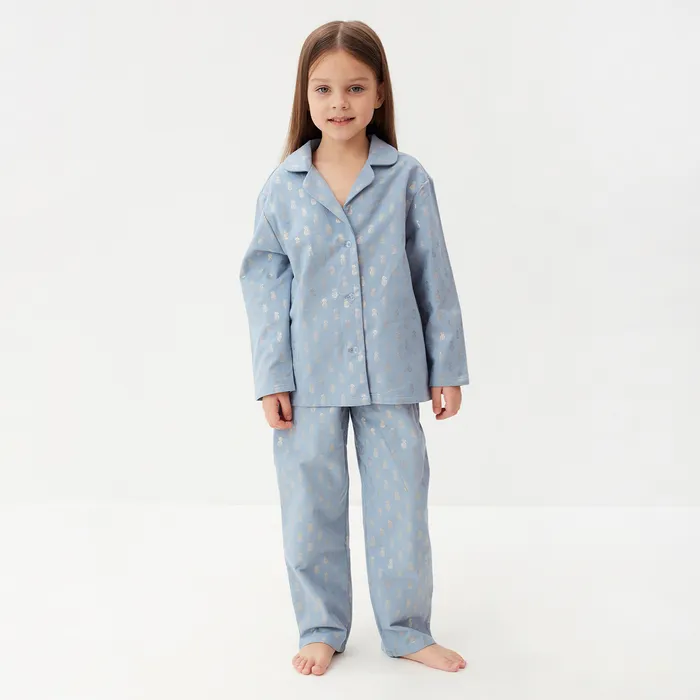 Пижама детская из фланели (рубашка, брюки) KAFTAN "Ананасы", рост 110-116, голубой — Характеристики
