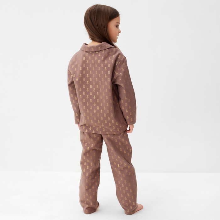 Пижама детская из фланели (рубашка, брюки) KAFTAN "Ананасы", рост 110-116, кофейный — Характеристики