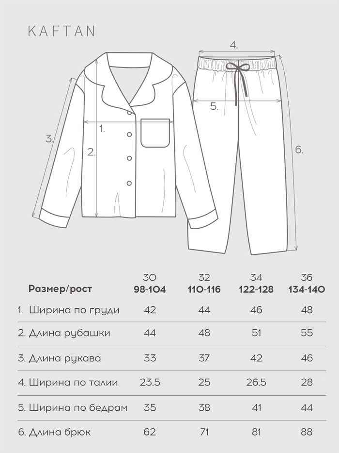 Пижама детская KAFTAN «Муслин», размер 30 (98-104 см), фиолетовая — Характеристики