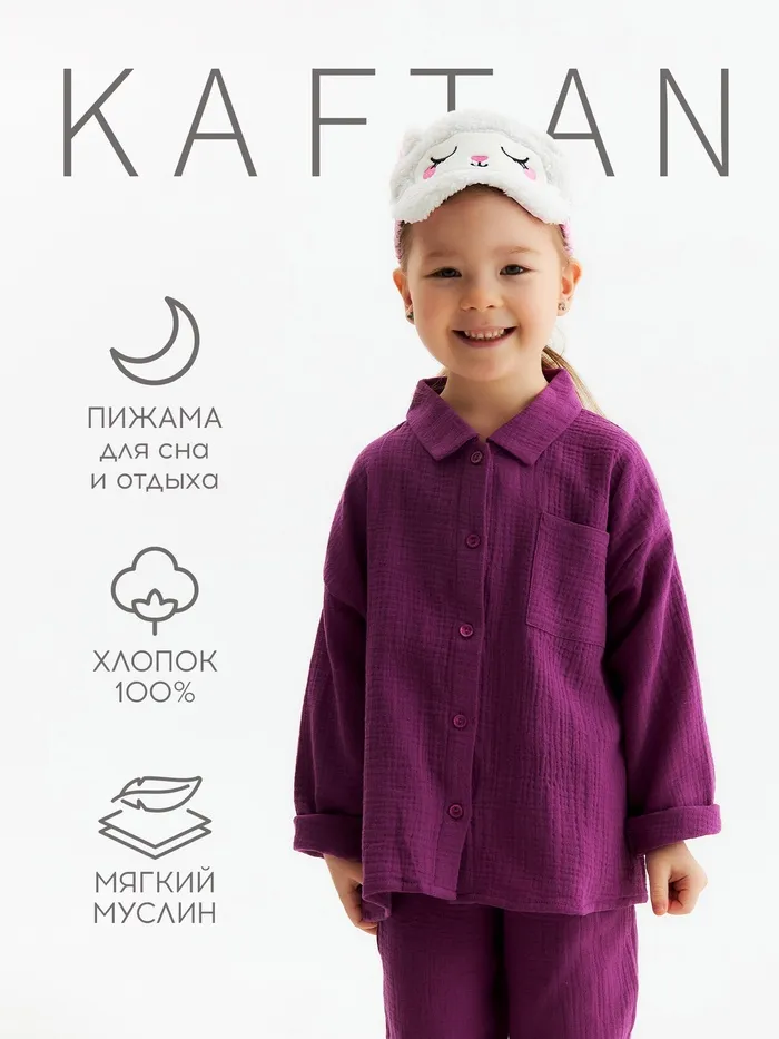 Пижама детская KAFTAN «Муслин», размер 32 (110-116 см), фиолетовая — Характеристики