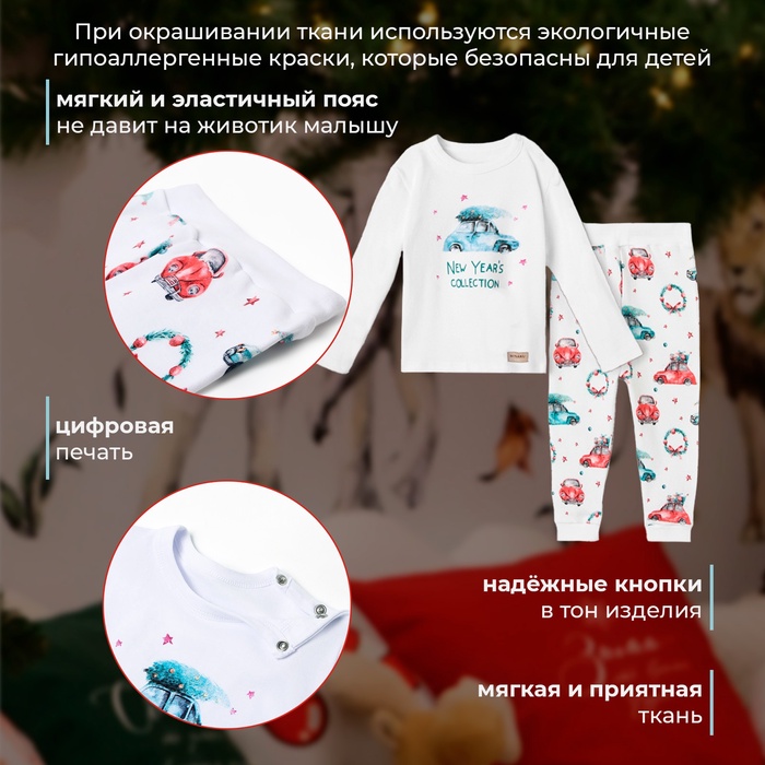 Пижама детская MINAKU "New Year's cars", белая, рост 74-80 см — Характеристики