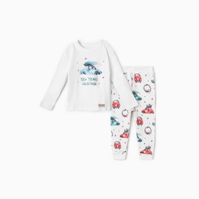 Пижама детская MINAKU "New Year's cars", белая, рост 86-92 см — Характеристики