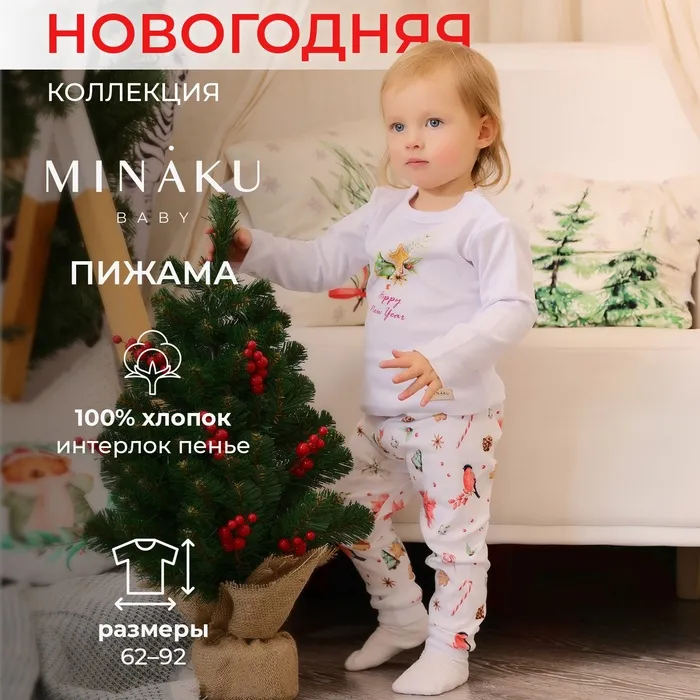 Пижама детская MINAKU Winter, белая, рост 62-68 см — Характеристики