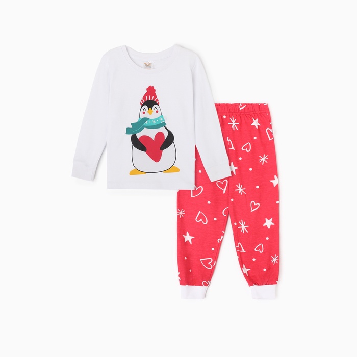 Пижама детская НГ Пингвин, цвет белый/красный, рост 128 — Характеристики