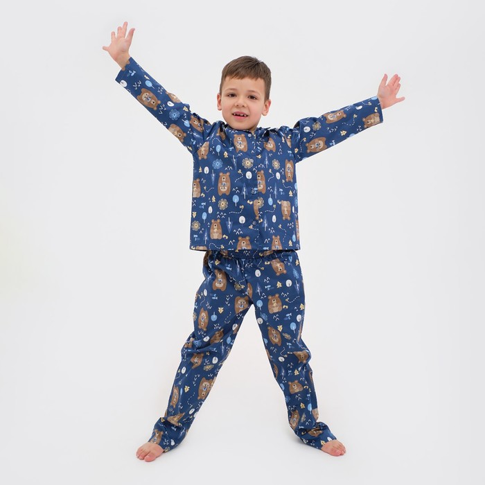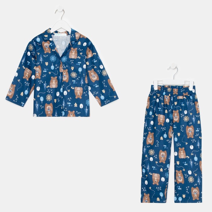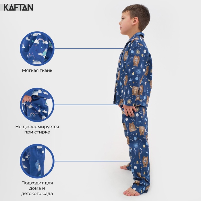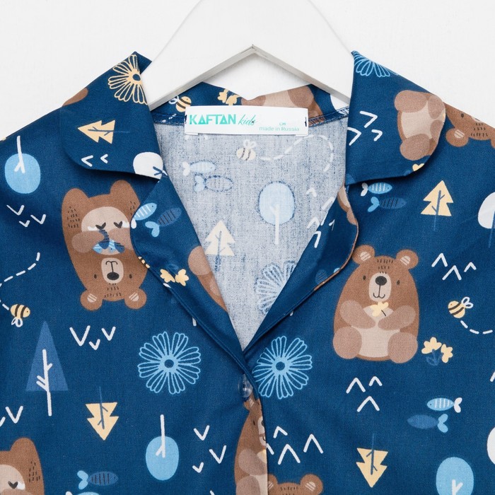 Пижама детская (рубашка, брюки) KAFTAN «Мишки», синяя, рост 110-116 см — Характеристики