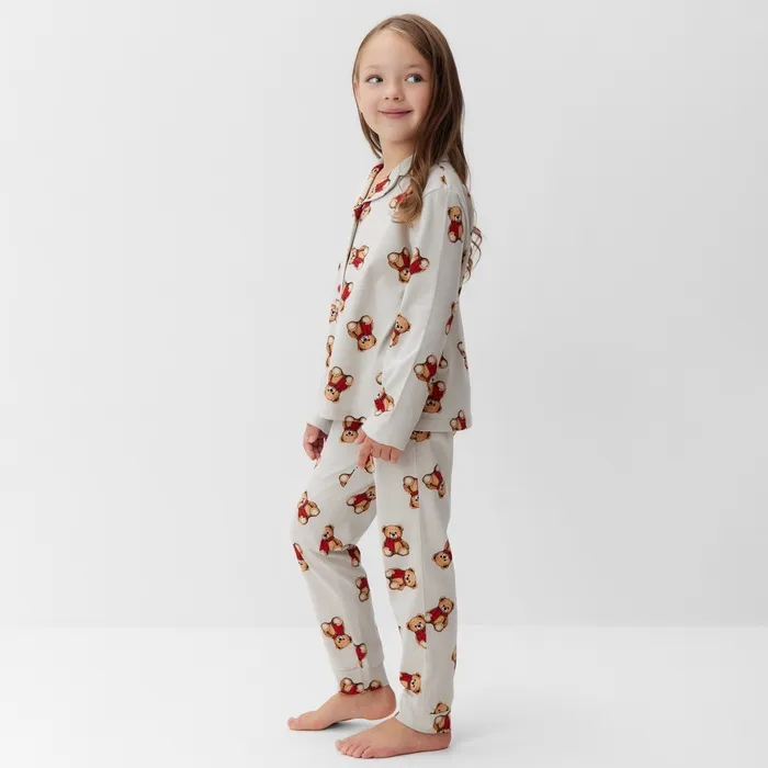 Пижама детская (рубашка и брюки) KAFTAN "Мишка в шарфе" размер 32 (110-116 см) — Характеристики