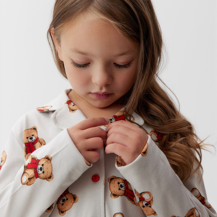 Пижама детская (рубашка и брюки) KAFTAN "Мишка в шарфе" размер 32 (110-116 см) — Характеристики