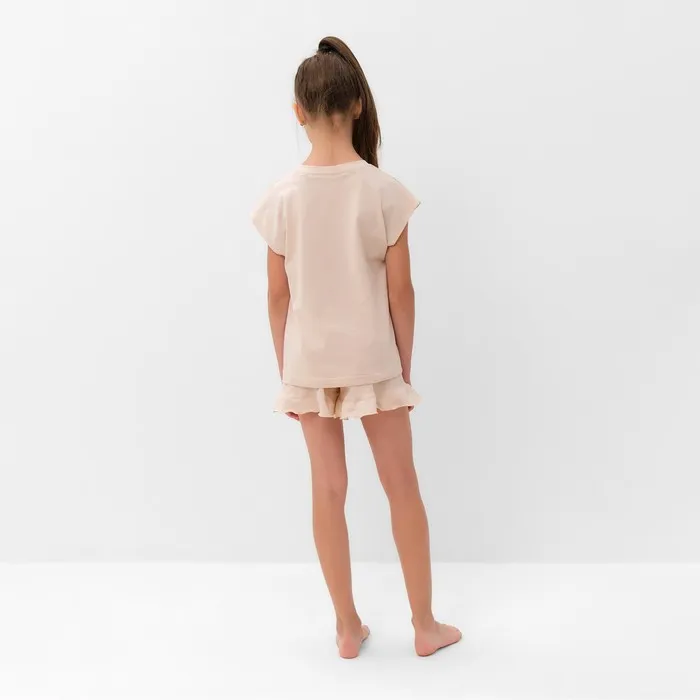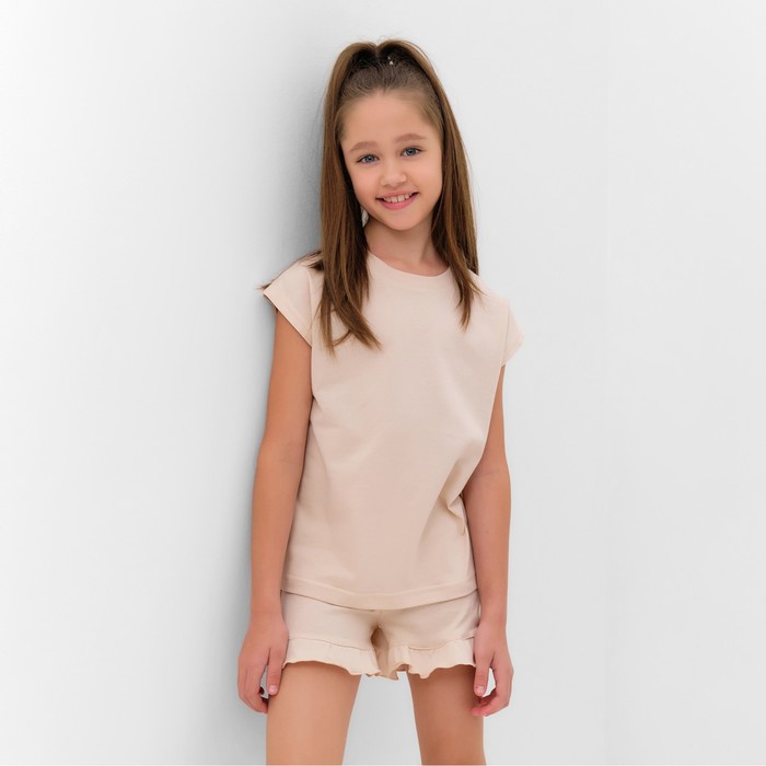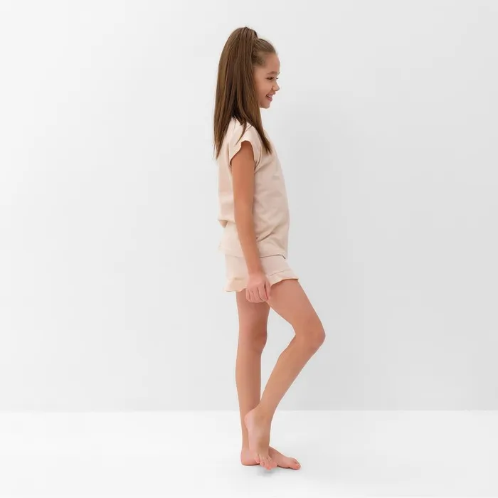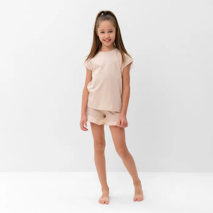 Пижама для девочки (футболка и шорты) MINAKU, цвет бежевый, рост 134 см — Характеристики