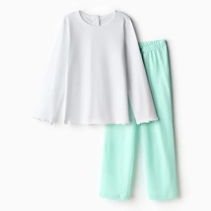 Пижама для девочки (кофта и брюки) MINAKU, цвет белый/мятный, рост 146 см — Характеристики