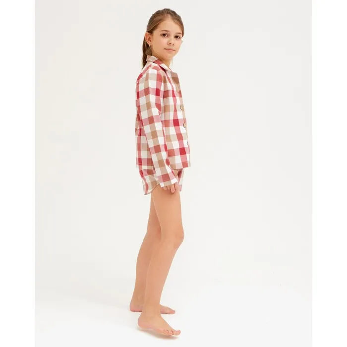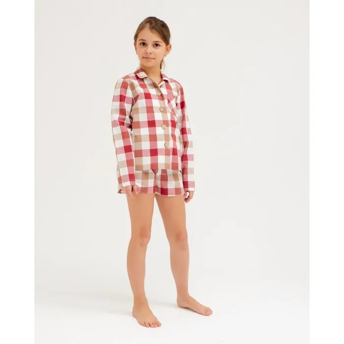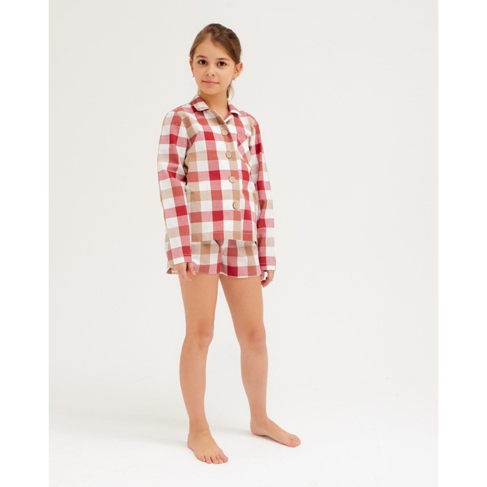Пижама для девочки (рубашка, шорты) MINAKU: Home collection KIDS, красная, рост 128 см — Характеристики