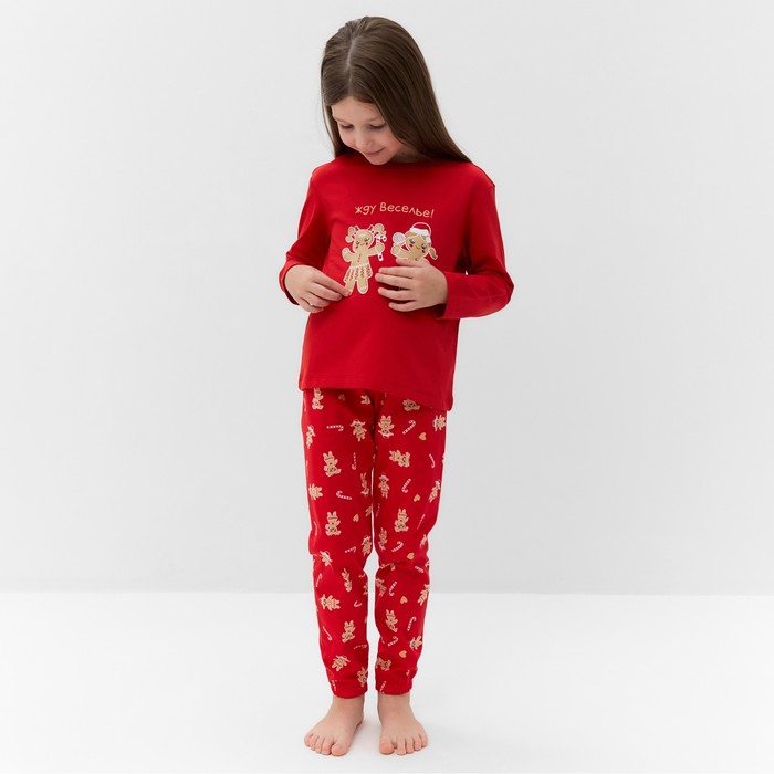 Пижама для девочки, цвет красный/печеньки, рост 116-122 см — Характеристики