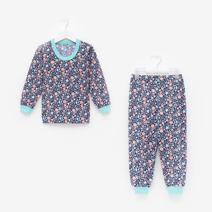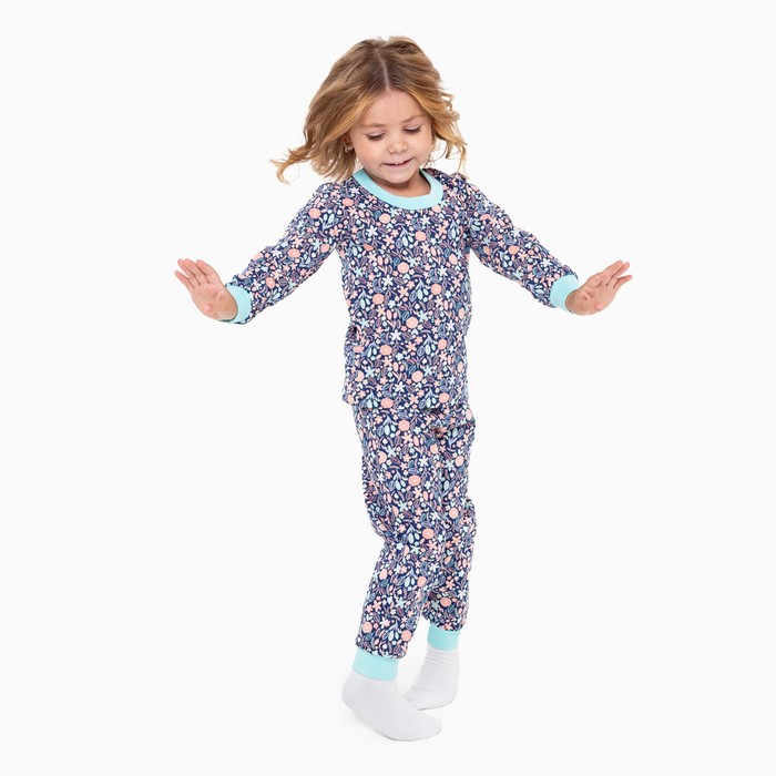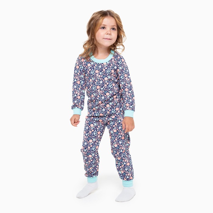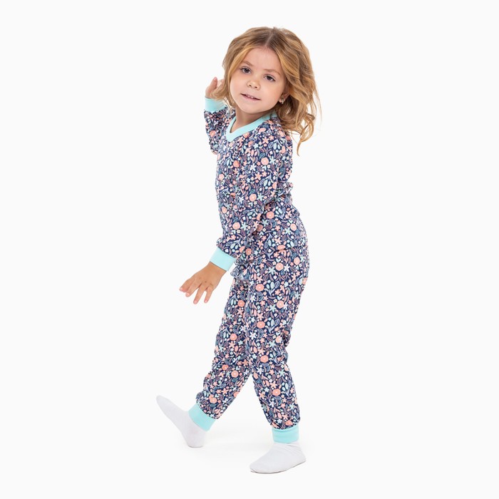 Пижама для девочки, цвет синий/листья, рост 98 см — Характеристики