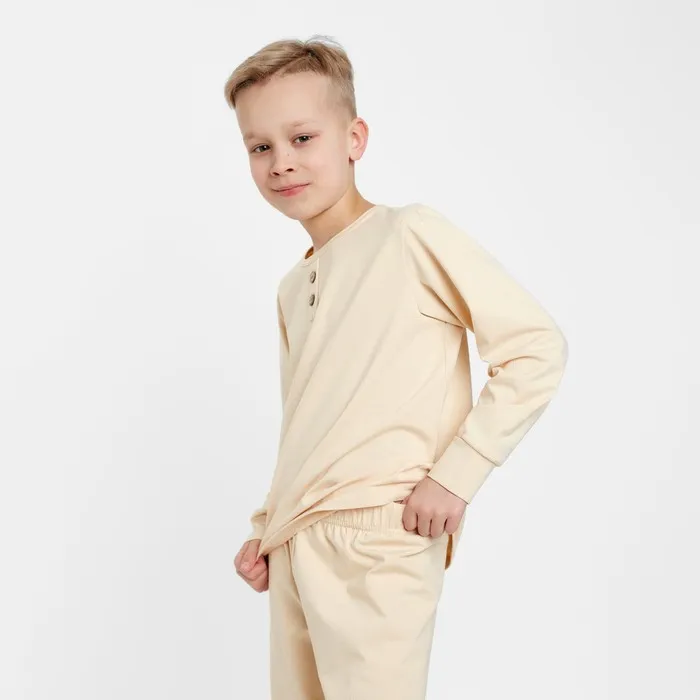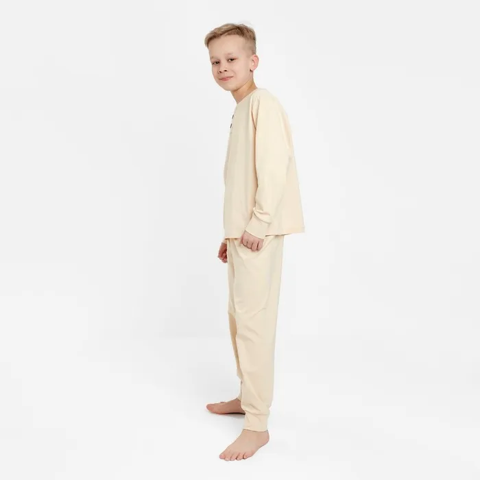 Пижама для мальчика (лонгслив, брюки) MINAKU, бежевая, рост 116 см — Характеристики