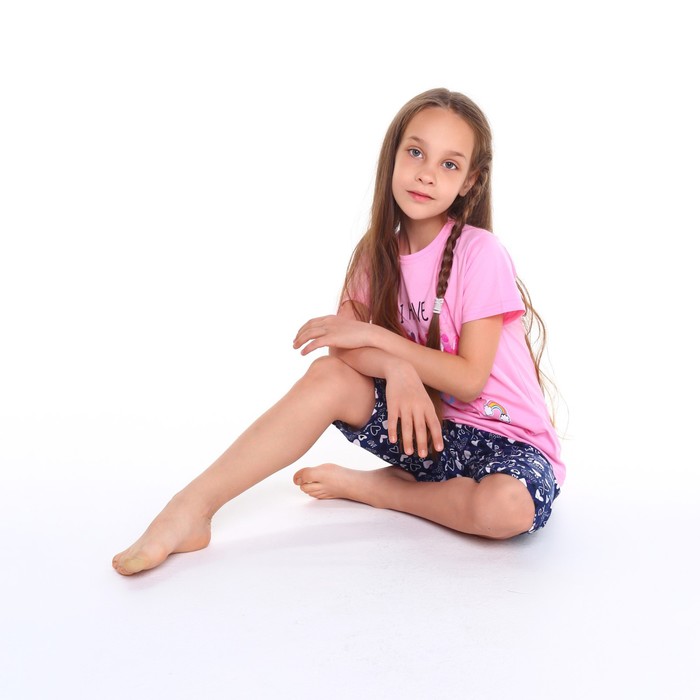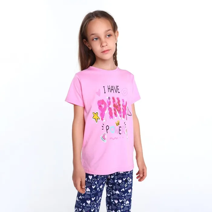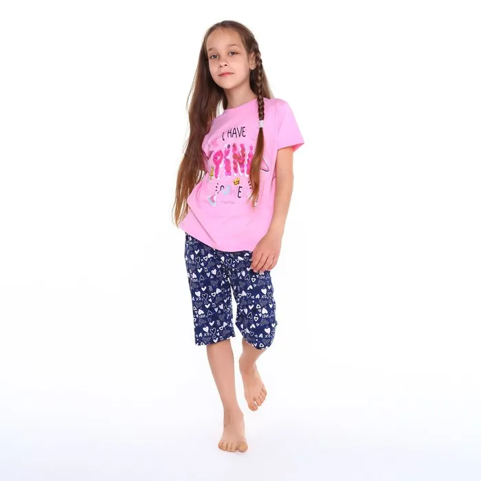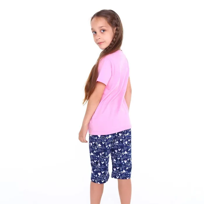 Пижама (футболка, бриджи) для девочки, цвет розовый/синий, рост 122 см — Характеристики