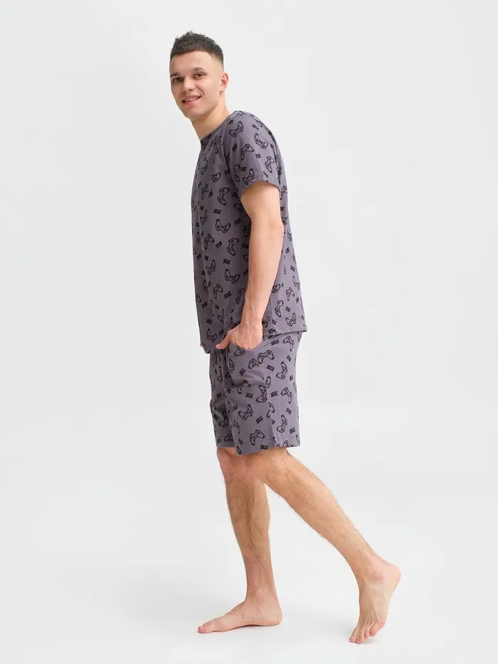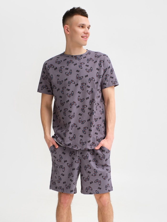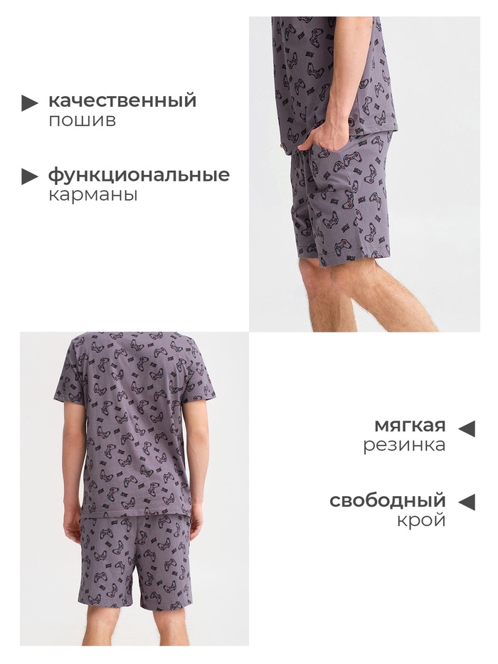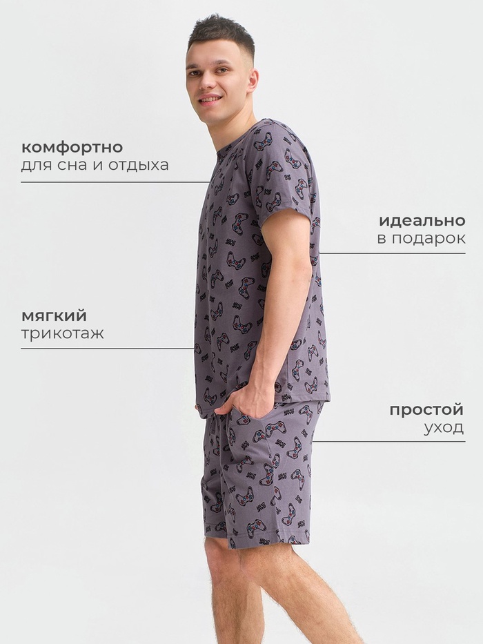 Пижама мужская (футболка, шорты) KAFTAN Game, размер 48, серая — Характеристики