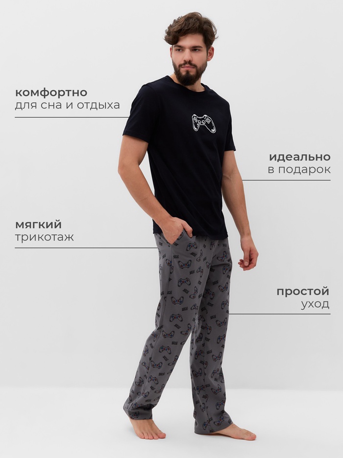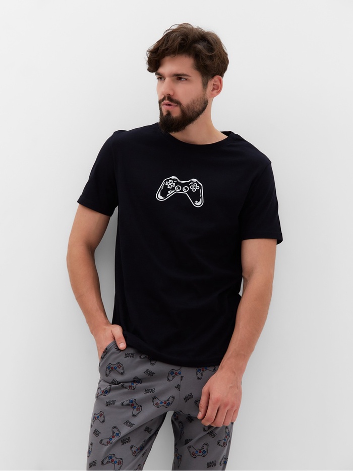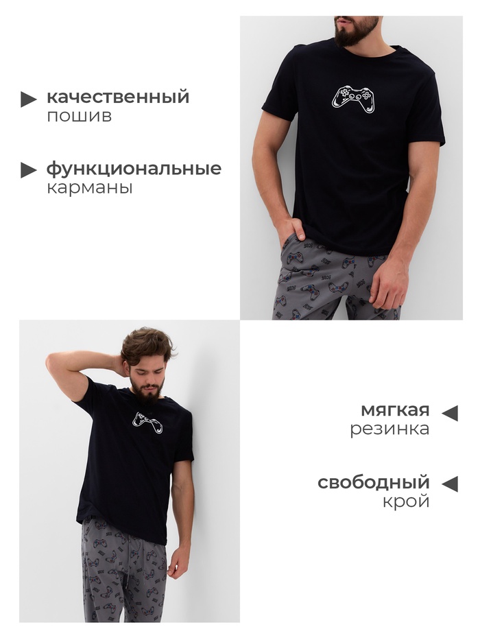 Пижама мужская (футболка, шорты) KAFTAN Game, размер 56, чёрная — Характеристики