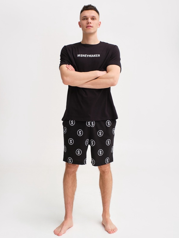 Пижама мужская (футболка, шорты) KAFTAN Moneymaker, размер 56, чёрная — Характеристики