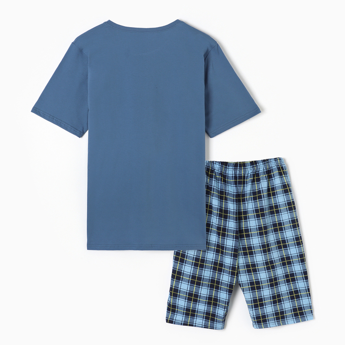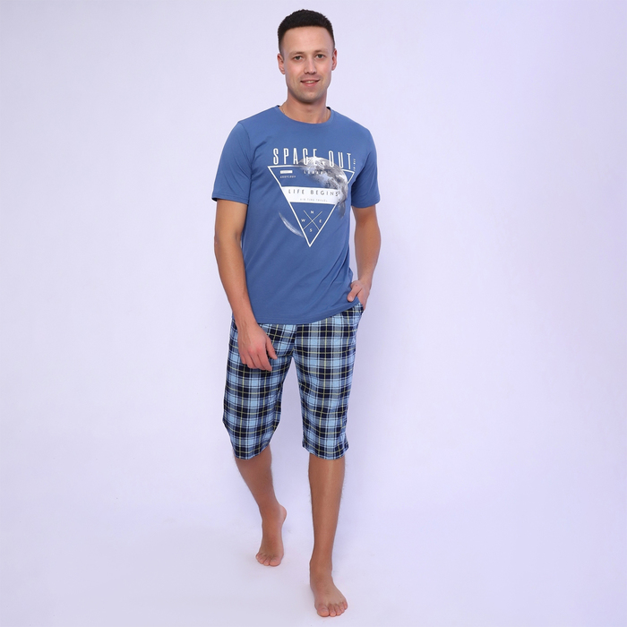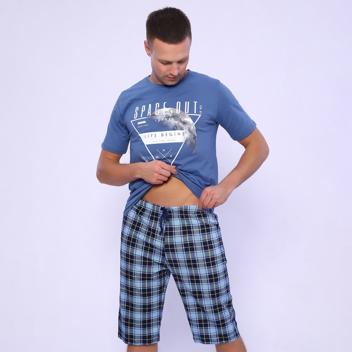 Пижама мужская (футболка/шорты), цвет серо-голубой, размер 48