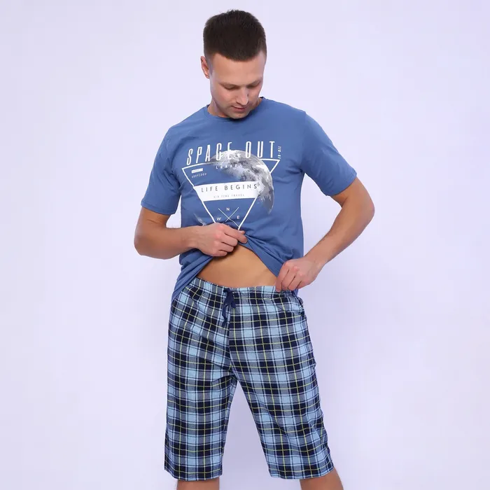 Пижама мужская (футболка/шорты), цвет серо-голубой, размер 48 — Характеристики