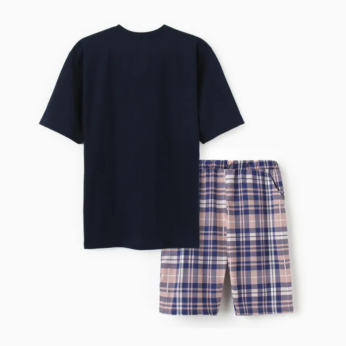 Пижама мужская (футболка/шорты), цвет синий/клетка, размер 56 — Характеристики