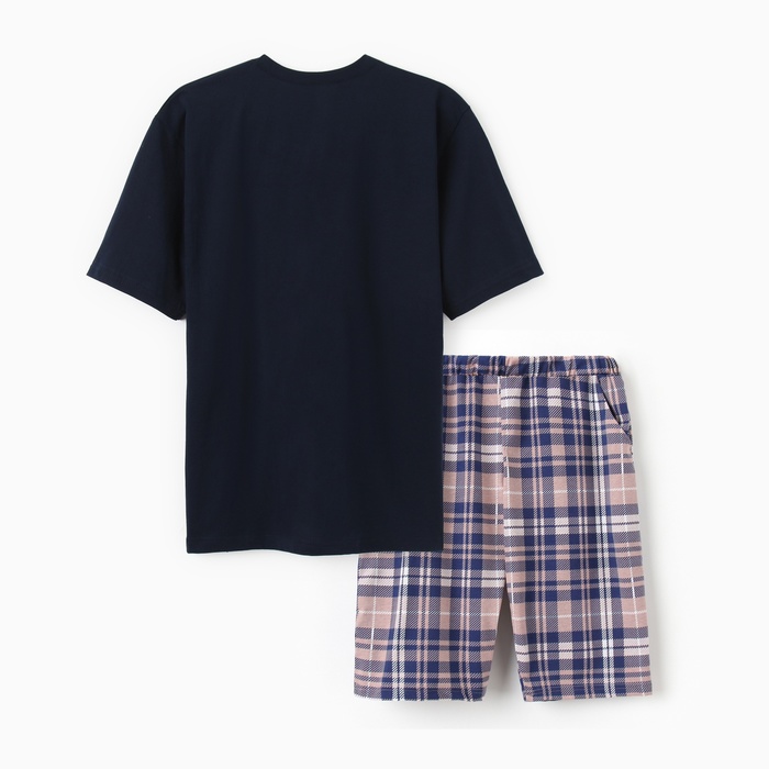 Пижама мужская (футболка/шорты), цвет синий/клетка, размер 56